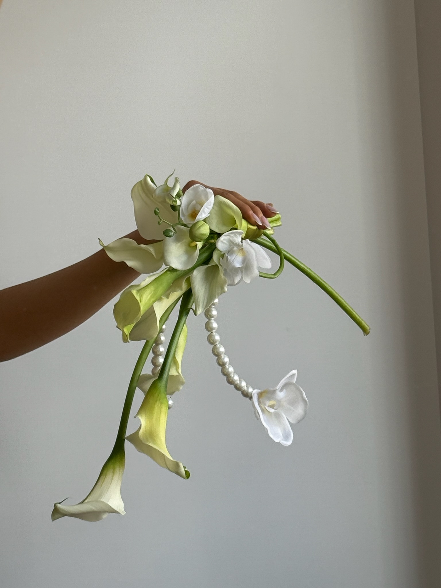 Inklusive: Calla-Lilien, Orchideen, Perlen.
