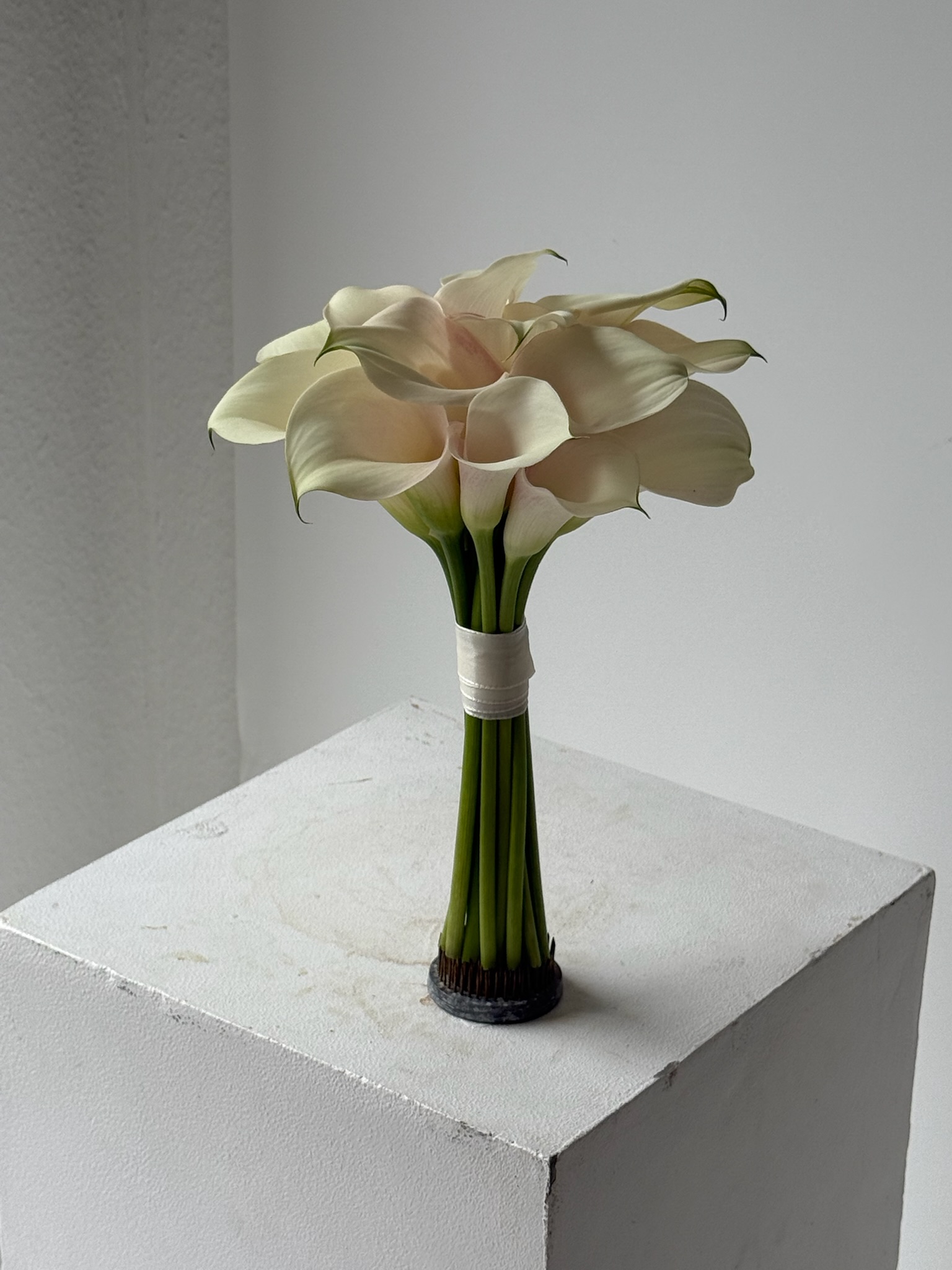 - Уберите упаковку, подрежьте стебли на 1–2 см под углом.